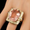 | Kim loại: 14k Solid Yellow Gold | Đá chính: Morganite | Đá tấm: Diamond |