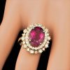 | Kim loại: 14k Solid Yellow Gold | Đá chính: Rubellite | Đá tấm: Diamond |