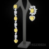 Đôi hoa tai rơi theo trend bất đối xứng sử dụng tông vàng của kim cương fancy là một trong sản phẩm khá chất của Trangdoan. Tỉ mỉ đến từng chi tiết, thiết kế của Asymmetric Diamond đã làm kinh ngạc bởi các vòng halo đơn giản cùng với các shape đá Emerald cut có một không hai.