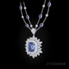 Mặt dây đá Sapphire được thiết kế theo phong cách sang trọng, hoành tráng. Là một trong các tác phẩm dành cho các quý cô tăng thêm nét quyến rũ trong các buổi dạ tiệc hoặc các sự kiện long trọng. Quanh viên đá Sapphire xanh thẫm thuần khiết, Trangdoan đã khéo léo tô điểm thêm sự long lanh, tỏa sáng bằng các viên Kim cương lớn với chất lượng cao. Khi di chuyển, mặt dây phát ra những tia sáng lấp lánh, khiến ai cũng khó mà cưỡng lại được, dù chỉ một ánh nhìn.