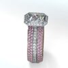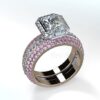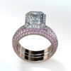 Blaze Framed Radiant Cut Diamond Engagement Ring with Pink Sapphire Bands