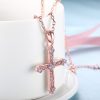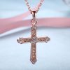 Cross Round Cut White Sapphire Rose Gold/Silver Titanium Necklaces