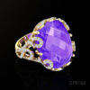 Lấp lánh và rực rỡ, Nhẫn đá Amethyst được đính trên vỏ Kim cương với thiết kế lạ mắt tăng thêm phần đẳng cấp và mới mẻ cho chủ nhân. Trên chất liệu vàng 18K là những đường trang trí họa tiết được đính kim cương tấm rực rỡ.
