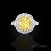 Chiếc Nhẫn đính hôn mang phong cách cổ điển này được phối màu một cách tinh tế và tuyệt đẹp trên ngón tay của bạn. Viên Kim cương màu fancy khá đẹp rực rỡ, bao quanh là hai viền kim cương vàng và trắng lấp lánh chắc chắn sẽ chiếm được cảm tình của bạn ngay từ cái nhìn đầu tiên.