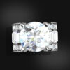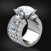 Với tính chất quý giá không gì so sánh được của kim cương, sở hữu trang sức kim cương luôn giúp chủ nhân tăng thêm sự hoàn mỹ và đẳng cấp. Nhẫn Kim cương thật sự rực rỡ và ấn tượng với viên đá chính hơn 5cts là một trong sản phẩm hoành tráng nhất của Trangdoan. Nhẫn được thiết kế trẻ trung, hiện đại, lấy sự lấp lánh của chính kim cương tấm làm nền, cùng với dãy kim cương Baguette làm điểm nhấn. Nhẫn kim cương được “đo ni đóng giày” một cách hoàn hảo cho vị nữ Doanh nhân thành đạt.