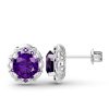 Jeulia Amethyst Flower Round Cut Sterling Silver Stud Earrings