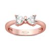Simple but not plain, this ring makes a little lovely gift for loved one or yourself. Crafted in rose gold tone sterling silver, this ring is topped with a bowknot-shaped frame set with two heart cut stones. Pledge your affection with this glittering gift of love. It won’t disappoint you.