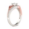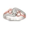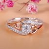 Stylish and stunning, this heart ring will be a nice holiday gift for Mom, sister,friend or yourself! Heart is one of the most popular design elements in jewelry. It’s often related with love. Crafted in two tone sterling silver, sculptured in two bypassing shimmering ribbon linked with the center stone, the ring is designed to be a little lovely thing. Every heart is linked with a rose gold tone polished ribbon. Treat yourself or surprised loved ones with this dainty piece. It won’t disappoint you!
