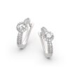 Classic and unique, these sparkling hoop earrings will capture your heart at first sight. Crafted in sterling silver, each earring features a sparkling round cut stones wrapped in a glistening halo of smaller round stones, which hoop dazzles with a crossover of glittering stones. Just add this stylish and beautiful piece to your jewelry box!