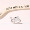 Uniquely designed to be noticed, this heart ring makes the fashion grade.Two heart shapes are sculptured on the sterling silver bypassing shank.Besides, you can engrave her name or even a meaningful word to make this gift an extra-special one she’ll cherish for years to come.This ring is a beautiful beginning to a lifetime of love.