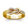 Chiếc nhẫn gút thắt này là cách thể hiện tình yêu của bạn chỉ dành riêng cho cô ấy và muốn được ở bên cô ấy mãi mãi. Chiếc nhẫn gút thắt mang phong cách thời trang và ý nghĩa, chắc chắn sẽ chạm đến trái tim của cô ấy. Được chế tác màu vàng bằng bạc sterling, chiếc nhẫn thiết kế có hai dải ruy băng đan xen vào nhau, một dải ruy băng được đính những viên đá tấm chiếu sáng lấp lánh khiến cho chiếc nhẫn trở nên độc đáo và mang lại một cái nhìn tinh tế trên ngón tay của bạn. Chiếc nhẫn này là một tuyên bố tuyệt đẹp cho tình yêu vĩnh cửu.