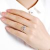 Chiếc nhẫn đính hôn này sẽ mang lại cho bạn những khoảnh khắc ngọt ngào lãng mạn với người bạn yêu vào ngày đặc biệt sắp tới. Thiết kế ở giữa của chiếc nhẫn được đính viên đá moissanite lấp lánh, xung quanh được viền bởi những viên đá nhỏ long lanh làm cho chiếc nhẫn trở nên nổi bật với vẻ đẹp lấp lánh của nó. Chiếc nhẫn được chế tác tinh xảo với đường kẻ đôi quyến rũ, tạo thêm sự chiếu sáng với những viên đá tấm lung linh. Chiếc nhẫn mang phong cách thời trang này là một món quà hoàn hảo cho tất cả các quý cô hoặc bạn có thể cầu hôn cô ấy với chiếc nhẫn tuyệt đẹp này.