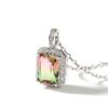 Unique and meaningful, this necklace makes a nice holiday gift for loved ones or yourself. Crafted in sterling silver, this watermelon necklace displays an extremely vivid range of color from bright pink to bright green. The color shift in this pendant is amazing! Setted with shimmering stones, the divine beauty and majestic appeal of the jewelry creates a whole new world of sophistication.