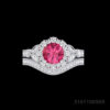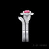 Với ý nghĩa đặc biệt như thế, cặp Nhẫn đá Sapphire được thiết kế từ Trangdoan vừa mang ý nghĩa truyền thống, lại vừa đem đến một phong cách hiện đại, tinh tế. Sapphire hồng với màu sắc tươi tắn, bắt mắt được viền quanh bởi vòng halo Kim cương rực rỡ. Bên cạnh những đường nét họa tiết trang trí được chạm khắc là các mảng hình thôi đính kim cương tựa như những chiếc lá, cánh bướm đầy duyên dáng.