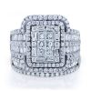 Princess Cut White Sapphire 925 Sterling Silver Halo Bridal Sets