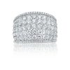 Wide low profile diamond band encrusted with pave set diamonds for an intense and glistening look.