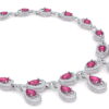 Dây chuyền đá Sapphire sang trọng được lựa chọn từng viên đá Sapphire không xử lý đến từ nhóm thiết kế Trangoan. Với thiết kế phân lớp hai viền xoàn quanh các viên Sapphire rực rỡ vô cùng tỉ mỉ và tinh tế. Các mắc nối chuyển động mượt mà khi di chuyển góp phần làm cho các viên đá quý thêm long lanh. Sản phẩm được chế tác trên chất liệu vàng trắng sang trọng này cũng là một trong sản phẩm nổi bật của Trangdoan.