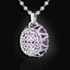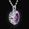 Lấp lánh và rực rỡ, Mặt dây đá Amethyst được đính trên vỏ Kim cương với thiết kế lạ mắt tăng thêm phần đẳng cấp cho chủ nhân. Trên chất liệu vàng trắng 18K là những đường trang trí hình tim được đính kim cương tấm rực rỡ.